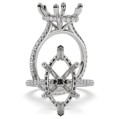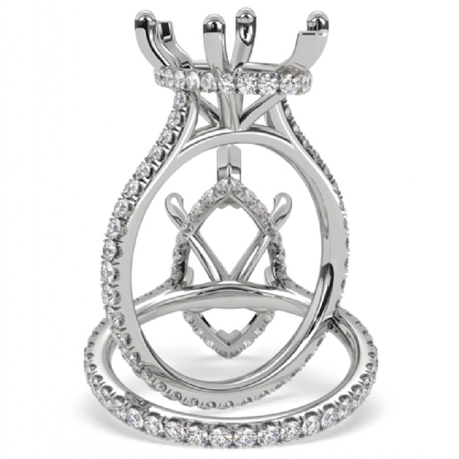 Simply elegant this marquise halo cathedral french u cut pave diamond engagement ring setting is made in high-quality 14k white gold. This beautiful ring showcases 0.58-carat accent round diamonds in a french U cut pave setting on hidden halo along the cathedral shank. This ring design can also be customized in your choice of the center diamond and gold metal in 14k & 18k white gold, yellow gold, rose gold, and platinum 950. If you don't find your desired jewelry, please don't hesitate to contact our designer to make your custom jewelry design