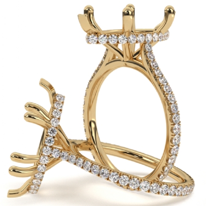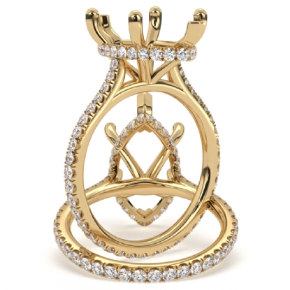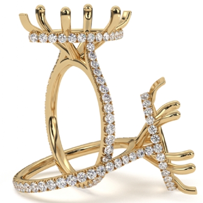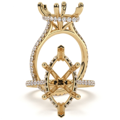 Simply elegant this marquise halo cathedral french u cut pave diamond engagement ring setting is made in high-quality 14k Gold Yellow. This beautiful ring showcases accent round diamonds in a french U cut pave setting on hidden halo along the cathedral shank. This ring design can also be customized in your choice of the center diamond and gold metal in 14k & 18k white gold, yellow gold, rose gold, and platinum 950. If you don't find your desired jewelry, please don't hesitate to contact our designer to make your custom jewelry design (0.58Ct. tw.)