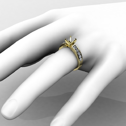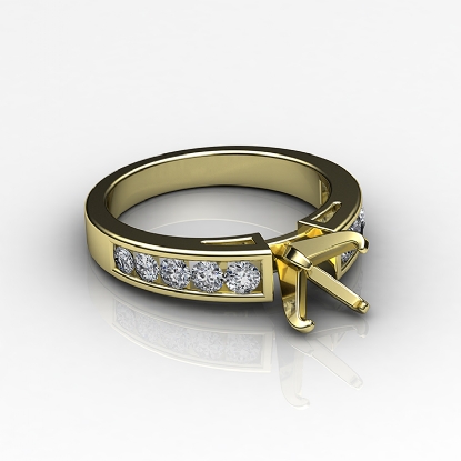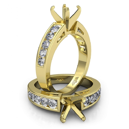Elegant and feminine, this 14k Gold Yellow ring features a round semi mount and channel set round diamonds along the shank. The total weight of this diamond engagement ring is . (0.75Ct. tw.)