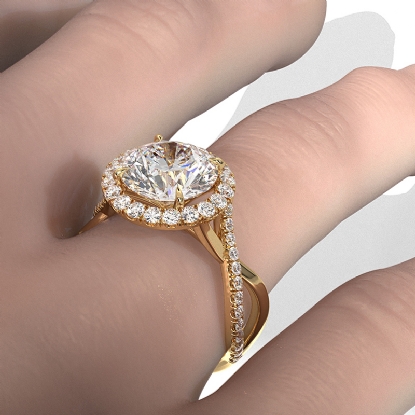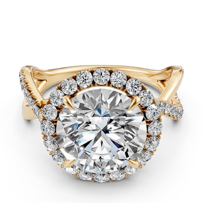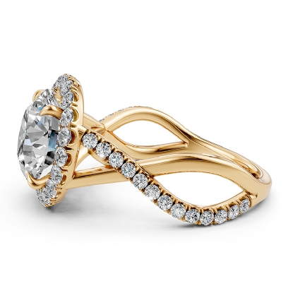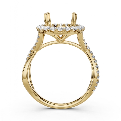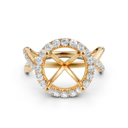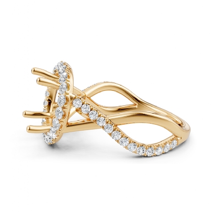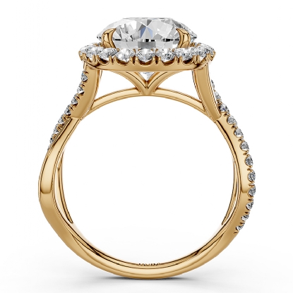 Stunning twisted halo XOXO style french u cut pave round diamond engagement ring handmade in high quality 14k Gold Yellow. This ring showcases brilliant round diamonds in a micro pave setting on halo and french U cut pave on the shank. Also available in your choice of the center diamond and gold metal in 14k & 18k white gold, yellow gold, rose gold, and platinum 950. If you don't find your desired jewelry, please don't hesitate to contact our designer to make your custom jewelry design (0.7Ct. tw.)
