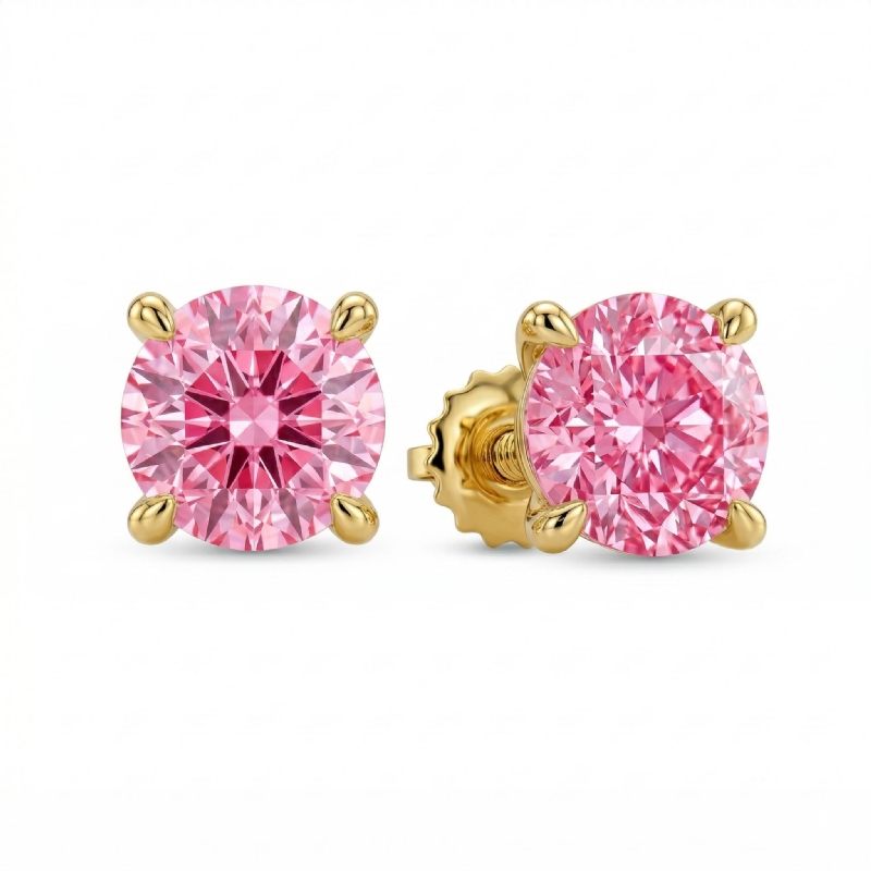 Stunning pair of claw prong basket Lab grown round Pink diamond women's stud earring crafted in 14k Gold Yellow. This beautiful classic earring showcases carat diamonds IGI Certified secured with claw prong. Add a touch of elegance to any outfit, also available in 14k & 18k white gold, yellow gold, rose gold and platinum 950. If you don't find your desired jewelry, please don't hesitate to contact our designer to make your custom jewelry design. (4Ct. tw.)