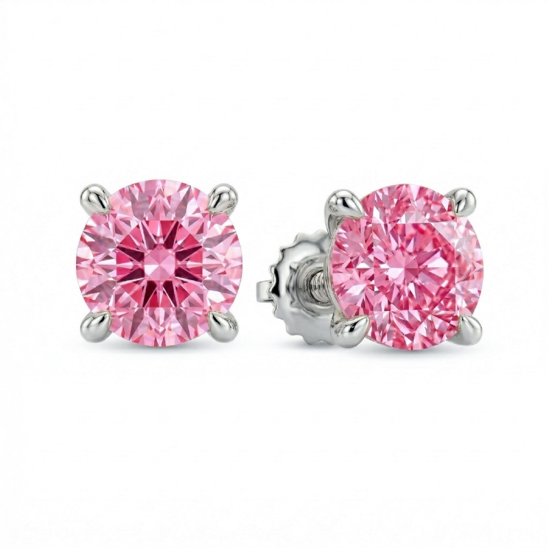 Lab grown Round Pink Diamond Stud Prong Earring Platinum (5Ct. tw.)