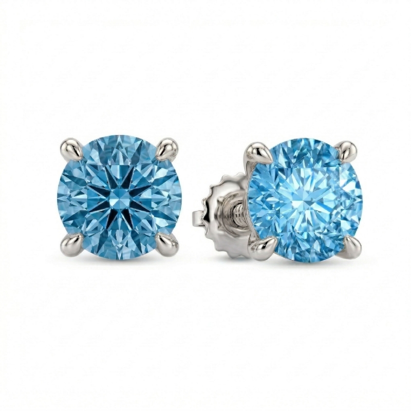 Perfect way to complete your outfit with this beautiful pair of claw prong basket women's round Lab grown blue diamond stud earring made in Platinum 950 IGI Certified. Showcases . carat round diamond secured with claw prong. Also available in 14k & 18k white gold, yellow gold, rose gold and platinum 950. If you don't find your desired jewelry, please don't hesitate to contact our designer to make your custom jewelry design (10Ct. tw.)