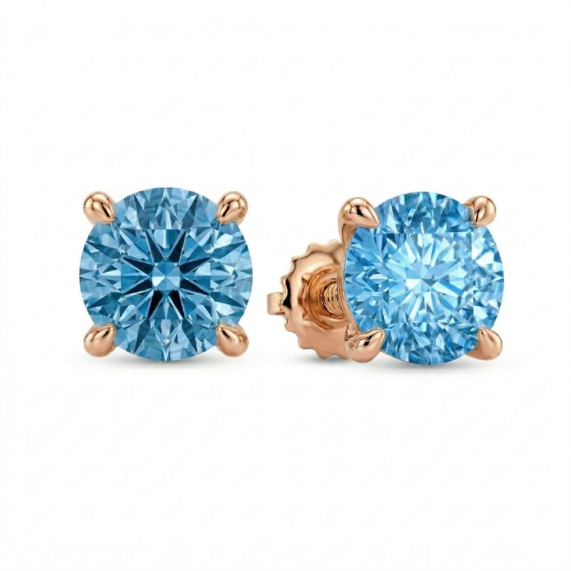 Perfect way to complete your outfit with this beautiful pair of claw prong basket women's round Lab grown blue diamond stud earring made in 14k Rose Gold IGI Certified. Showcases . carat round diamond secured with claw prong. Also available in 14k & 18k white gold, yellow gold, rose gold and platinum 950. If you don't find your desired jewelry, please don't hesitate to contact our designer to make your custom jewelry design (3Ct. tw.)