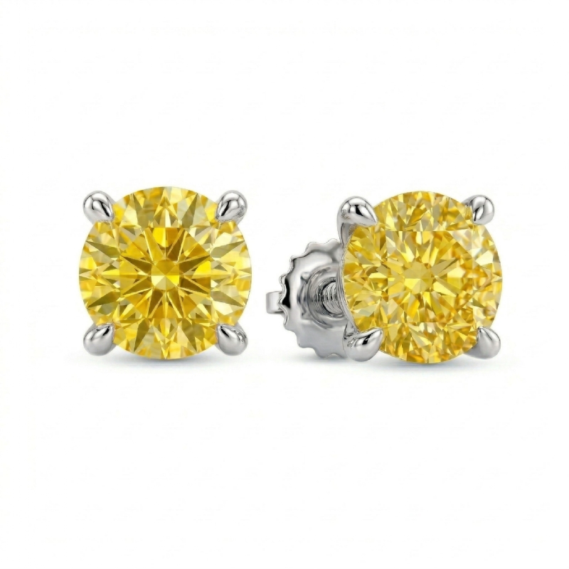 Round Lab grown Yellow Diamond Prong Stud Earring Platinum (6Ct. tw.)