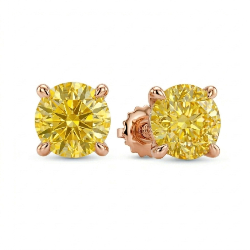 Gorgeous pair of claw prong basket round Lab grown Yellow diamond women's stud earring handmade in high polished 14k Rose Gold IGI Certified, this will look fabulous on any outfit. Showcases . carat round diamond beautifully secured with claw prong. Perfect for anniversary, party or birthday gift, also available in 14k & 18k white gold, yellow gold, rose gold and platinum 950. If you don't find your desired jewelry, please don't hesitate to contact our designer to make your custom jewelry design (3Ct. tw.)