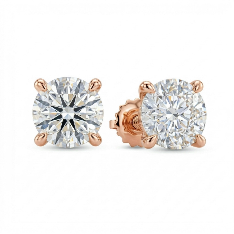 Round Lab grown Diamond Prong Stud Earring IGI Certified 14k Rose Gold (3Ct. tw.)