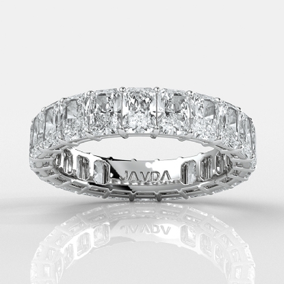 This delicate north-south women's eternity radiant cut HPHT lab-grown diamond wedding band handcrafted in 14k white gold. Showcases 4.87 carat radiant diamonds in a shared prong setting with high polished. Enhance your look with this fashionable wedding band, also available in 14k & 18k white gold, yellow gold, rose gold and platinum 950. If you don't find your desired jewelry, please don't hesitate to contact our designer to make your custom jewelry design. (4.87Ct. tw.)