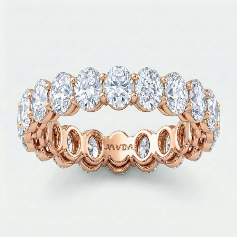 This sparkling women's eternity wedding band handmade 14k Rose Gold. Showcases oval HPHT lab-grown diamond in a shared prong setting with high polished metal. Perfectly stackable and easily worn on its own, this ring is sure to catch the light and the eye also available in 14k & 18k white gold, yellow gold, rose gold and platinum 950. If you don't find your desired jewelry, please don't hesitate to contact our designer to make your custom jewelry design. (3.58Ct. tw.)