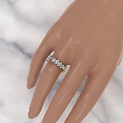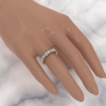 This delicate marquise HPHT lab-grown diamond wedding band handmade 14k Gold Yellow. This stackable marquise diamonds women's eternity wedding band ring showcases in a shared prong setting. Mix and match this stackable ring with any other ring for fashionable look. Also available in 14k & 18k white gold, yellow gold, rose gold and platinum 950. If you don't find your desired jewelry, please don't hesitate to contact our designer to make your custom jewelry design. (4.59Ct. tw.)