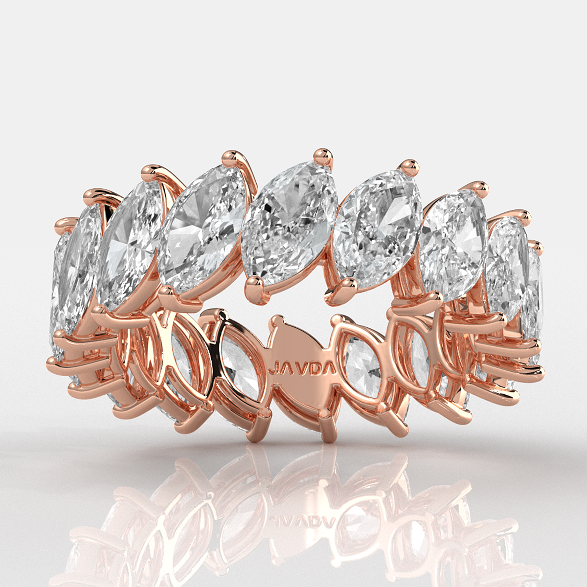 This delicate marquise HPHT lab-grown diamond wedding band handmade 14k Rose Gold. This stackable marquise diamonds women's eternity wedding band ring showcases in a shared prong setting. Mix and match this stackable ring with any other ring for fashionable look. Also available in 14k & 18k white gold, yellow gold, rose gold and platinum 950. If you don't find your desired jewelry, please don't hesitate to contact our designer to make your custom jewelry design. (4.59Ct. tw.)