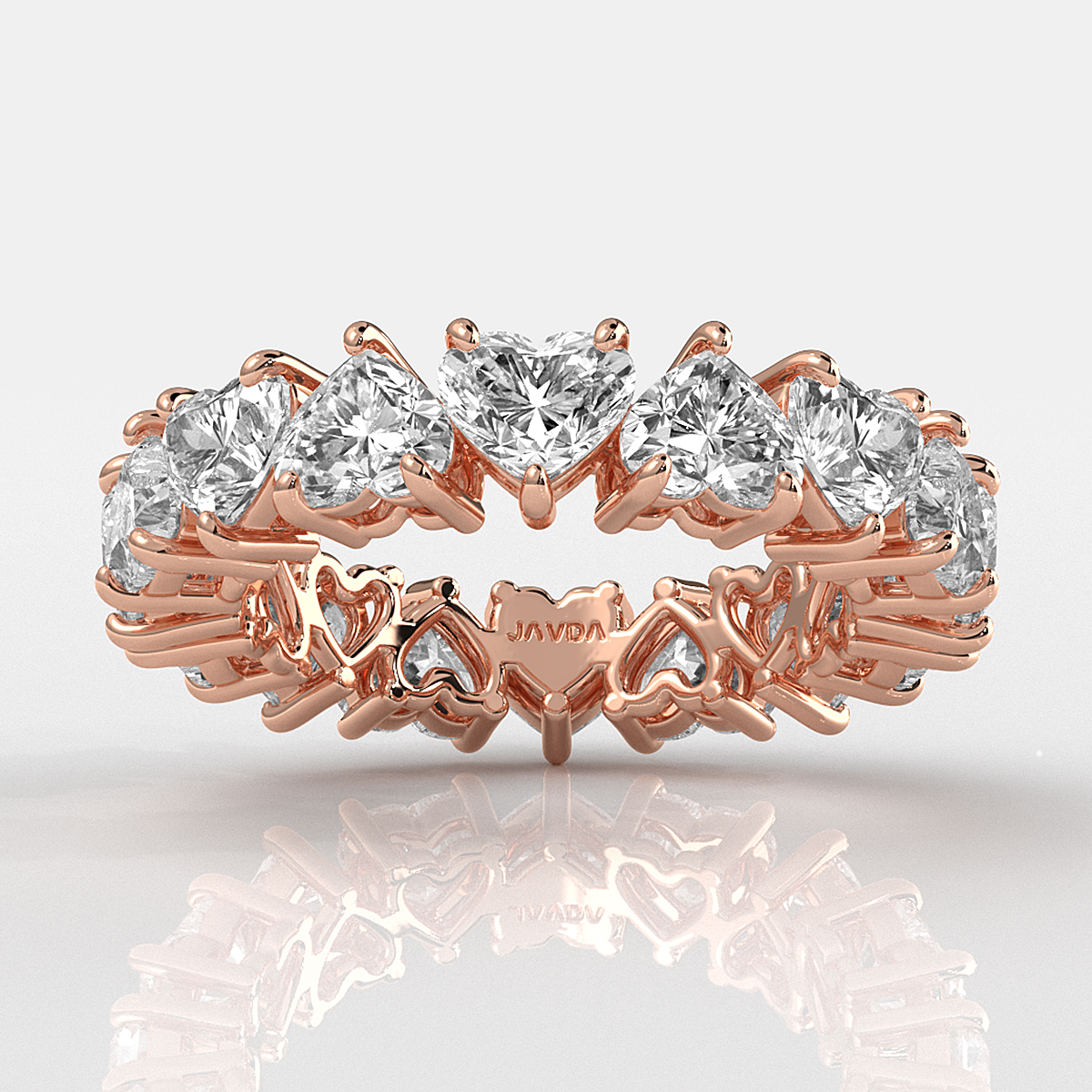 Add beauty and charm to your look, with this HPHT lab-grown romanctic heart diamond stackable ring crafted in 18k Rose Gold. Showcases heart diamonds womens eternity wedding band in a shared prong. This eternity band is extremely versatile and can be matched with almost every engagement ring. Or just wear it solo! Also available in 14k & 18k white gold, yellow gold, rose gold and platinum 950. If you don't find your desired jewelry, please don't hesitate to contact our designer to make your custom jewelry design. (3.9Ct. tw.)