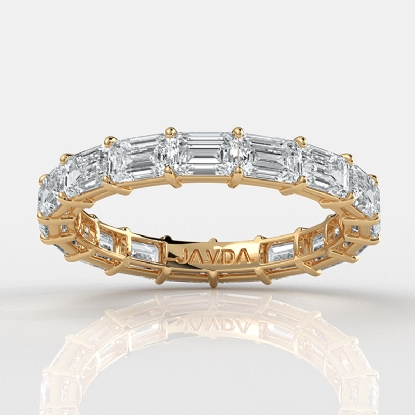 Presenting an endless ring of sparkle, emerald-cut HPHT lab-grown diamonds encircles in east-west configuration on an women's eternity band crafted 18k Gold Yellow. This wedding band features emerald diamonds beautifully set in a shared prong setting. Also available in 14k & 18k white gold, yellow gold, rose gold and platinum 950. If you don't find your desired jewelry, please don't hesitate to contact our designer to make your custom jewelry design. (3.04Ct. tw.)