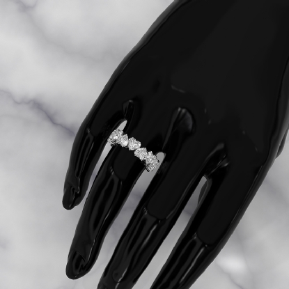 This alternating heart HPHT lab-grown diamond women's wedding band handmade 18k Gold White is perfect for gifting someone you love. Featuring diamond with diamonds in a shared prong. This eternity band promises to be a sparkling symbol of an everlasting bond. also available in 14k & 18k white gold, yellow gold, rose gold and platinum 950. If you don't find your desired jewelry, please don't hesitate to contact our designer to make your custom jewelry design. (7.8Ct. tw.)