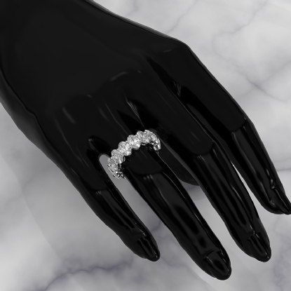 Celebrates the power of love with breathtaking brilliance of oval HPHT lab-grown diamonds. This elegant oval diamond eternity wedding band graces the finger with beautiful diamonds set in sculpted shared-prongs handmade Platinum 950, also available in 14k & 18k white gold, yellow gold, rose gold and platinum 950. If you don't find your desired jewelry, please don't hesitate to contact our designer to make your custom jewelry design (7.49Ct. tw.)