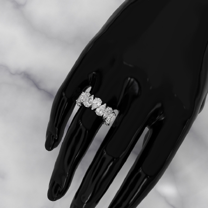 This beautiful HPHT lab-grown diamond teardrop style eternity band is handmade 18k Gold White. This wedding band features pear cut diamond in a shared prong setting. This wedding band will make a statement on your finger. Also available in 14k & 18k white gold, yellow gold, rose gold and platinum 950. If you don't find your desired jewelry, please don't hesitate to contact our designer to make your custom jewelry design. (8.12Ct. tw.)