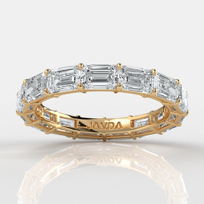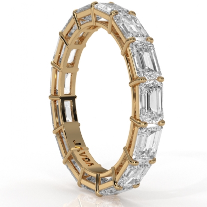 This brilliant east west emerald shape HPHT lab-grown diamond Wedding band for women's made 14k Gold Yellow. This charming wedding band showcases emerald diamond secured with shared prong. It is a beautiful complement to many delicate engagement rings, also available in 14k & 18k white gold, yellow gold, rose gold and platinum 950. If you don't find your desired jewelry, please don't hesitate to contact our designer to make your custom jewelry design (3.54Ct. tw.)