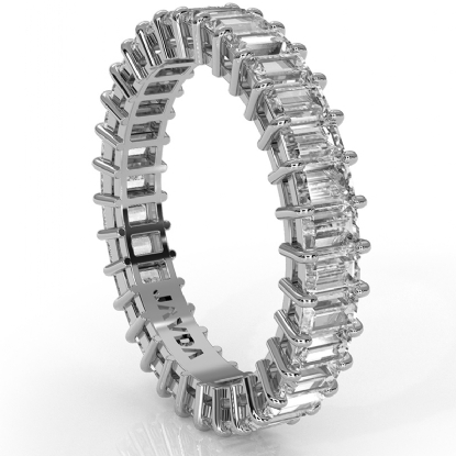 This timeless eternity ring features boldness and elegant gleam of baguette HPHT lab-grown diamond wedding band crafted 18k Gold White. Showcases baguette in an shared prong, perfectly styled to complement an engagement ring. Also available in 14k & 18k white gold, yellow gold, rose gold and platinum 950. If you don't find your desired jewelry, please don't hesitate to contact our designer to make your custom jewelry design. (2.6Ct. tw.)