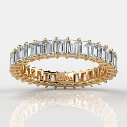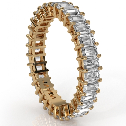 This timeless eternity ring features boldness and elegant gleam of baguette HPHT lab-grown diamond wedding band crafted 18k Gold Yellow. Showcases baguette in an shared prong, perfectly styled to complement an engagement ring. Also available in 14k & 18k white gold, yellow gold, rose gold and platinum 950. If you don't find your desired jewelry, please don't hesitate to contact our designer to make your custom jewelry design. (2.6Ct. tw.)