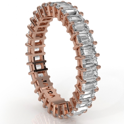 This timeless eternity ring features boldness and elegant gleam of baguette HPHT lab-grown diamond wedding band crafted 14k Rose Gold. Showcases baguette in an shared prong, perfectly styled to complement an engagement ring. Also available in 14k & 18k white gold, yellow gold, rose gold and platinum 950. If you don't find your desired jewelry, please don't hesitate to contact our designer to make your custom jewelry design. (2.6Ct. tw.)