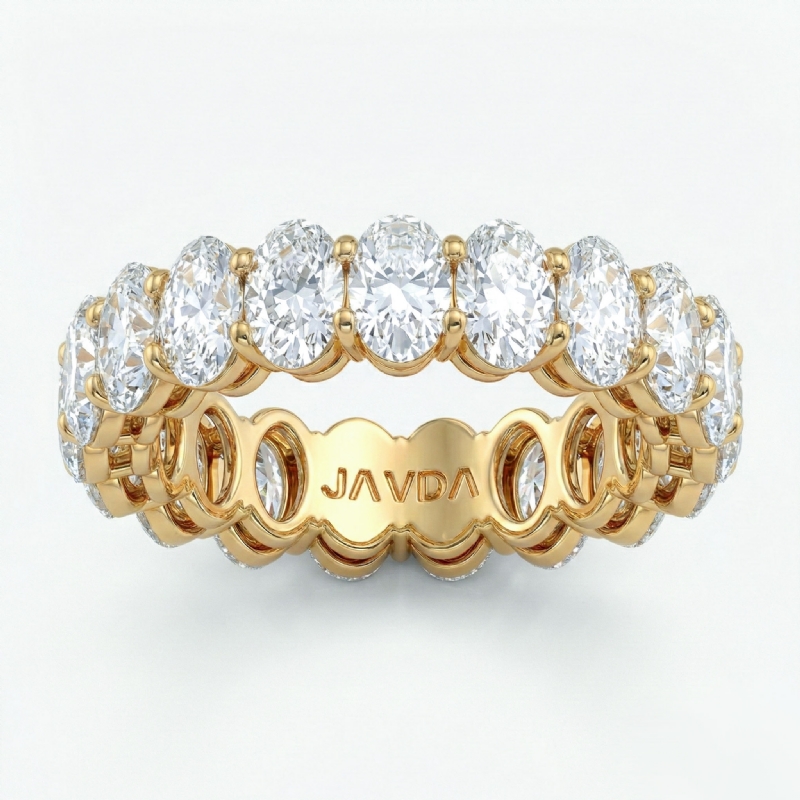 This luminous eternity women's HPHT lab-grown diamond wedding band handcrafted 18k Gold Yellow. This comfortable eternity wedding ring showcases oval diamonds in a shared prong setting on high polished metal. This wedding ring symbolize love and commitment. Also available in 14k & 18k white gold, yellow gold, rose gold and platinum 950. If you don't find your desired jewelry, please don't hesitate to contact our designer to make your custom jewelry design. (4.73Ct. tw.)