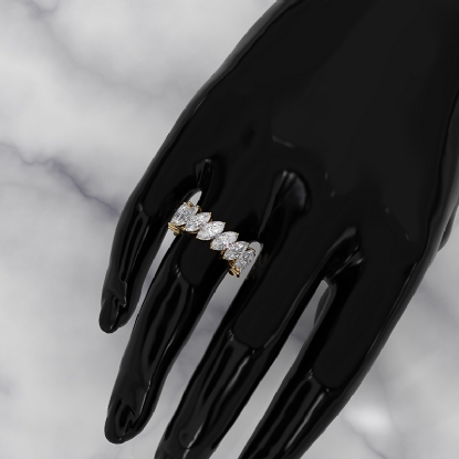 Gleaming minimalist marquise HPHT lab-grown diamond wedding band handmade in polished finished 14k Gold Yellow. This delicate ring showcases diamond in a shared prong setting. Designed to be paired with an engagement ring . Also available in 14k & 18k white gold, yellow gold, rose gold and platinum 950. If you don't find your desired jewelry, please don't hesitate to contact our designer to make your custom jewelry design (7.4Ct. tw.)