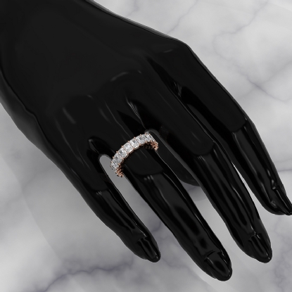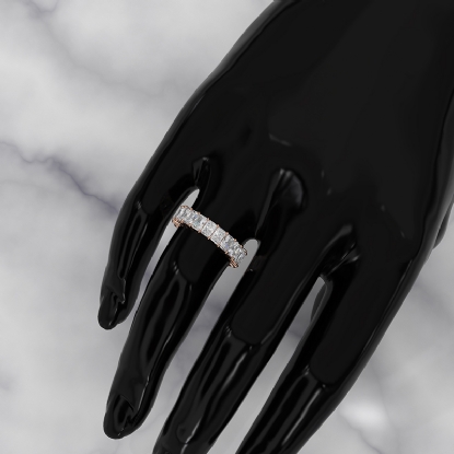 Breathtaking north-south HPHT lab-grown diamond eternity women's wedding band crafted in high polished 18k Rose Gold. Showcases a radiant diamond in a shared prong. A precious metal band completes the look and wraps the finger in lustrous light, also available in 14k & 18k white gold, yellow gold, rose gold and platinum 950. If you don't find your desired jewelry, please don't hesitate to contact our designer to make your custom jewelry design (3.68Ct. tw.)