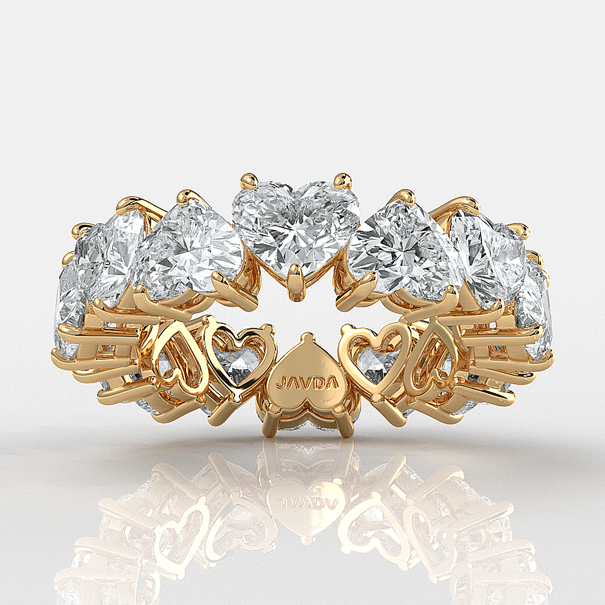 This stunning heart-shaped HPHT lab-grown diamond eternity wedding band is the perfect way to celebrate your love made 18k Gold Yellow. This band features a carat continuous row of heart-shaped diamonds that sparkle and shine. The diamonds are set in a shared prong setting, which gives them a luxurious and elegant look, also available in 14k & 18k white gold, yellow gold, rose gold and platinum 950. If you don't find your desired jewelry, please don't hesitate to contact our designer to make your custom jewelry design. (4.81Ct. tw.)