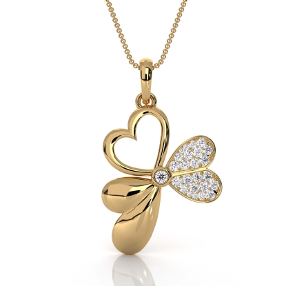 This adorable round diamond heart and butterfly pendant necklace crafted in 14k Gold Yellow. This delicate pendant features lab grown round diamonds gradually set in a micro pave setting, secures with a spring ring clasp. Reflect your love with this heart and butterfly pendant, it is also available in 14k & 18k white gold, yellow gold, rose gold and platinum 950. If you don't find your desired jewelry, please don't hesitate to contact our designer to make your custom jewelry design. (0.2Ct. tw.)