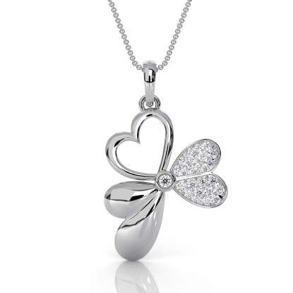 This adorable round diamond heart and butterfly pendant necklace crafted in 18k Gold White. This delicate pendant features lab grown round diamonds gradually set in a micro pave setting, secures with a spring ring clasp. Reflect your love with this heart and butterfly pendant, it is also available in 14k & 18k white gold, yellow gold, rose gold and platinum 950. If you don't find your desired jewelry, please don't hesitate to contact our designer to make your custom jewelry design. (0.2Ct. tw.)