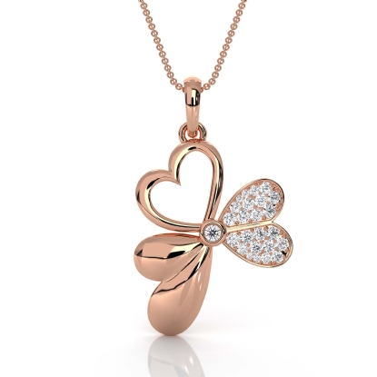 This adorable round diamond heart and butterfly pendant necklace crafted in 18k Rose Gold. This delicate pendant features lab grown round diamonds gradually set in a micro pave setting, secures with a spring ring clasp. Reflect your love with this heart and butterfly pendant, it is also available in 14k & 18k white gold, yellow gold, rose gold and platinum 950. If you don't find your desired jewelry, please don't hesitate to contact our designer to make your custom jewelry design. (0.2Ct. tw.)
