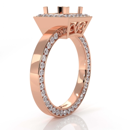 Diamond Engagement Princess Semi Mount 18k Rose Gold Pave Ring Setting (1.77Ct. tw.)