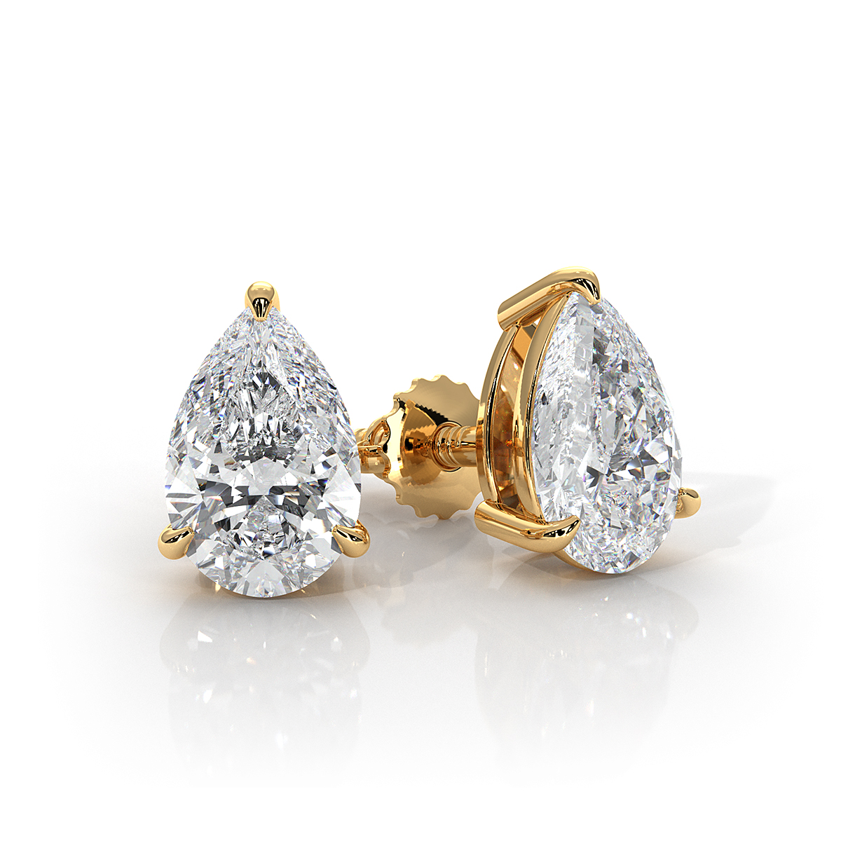 Beautiful pair of claw prong pear lab grown diamond stud earring for women's made in 14k Gold Yellow. This earring features a matched pair of . pear diamond secured in classic basket setting with IGI Certified. Perfect for a gift! Also available in 14k & 18k white gold, yellow gold, rose gold and platinum 950. If you don't find your desired jewelry, please don't hesitate to contact our designer to make your custom jewelry design (2Ct. tw.)