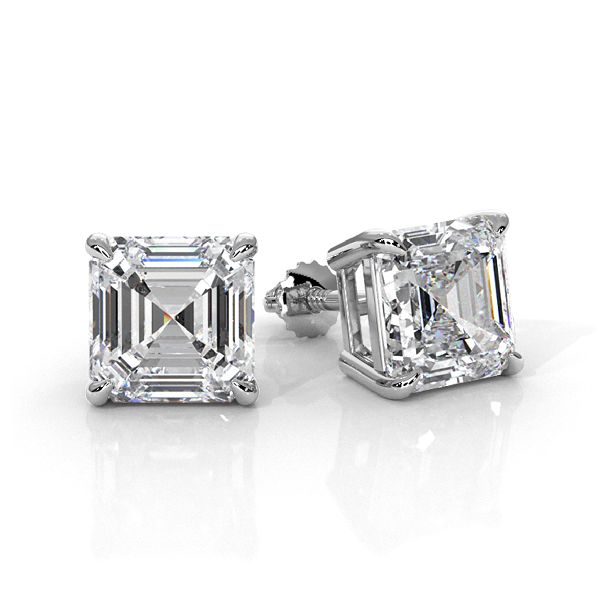 Asscher Lab Grown Diamond Claw Prong Stud Earring IGI Platinum (4Ct. tw.)