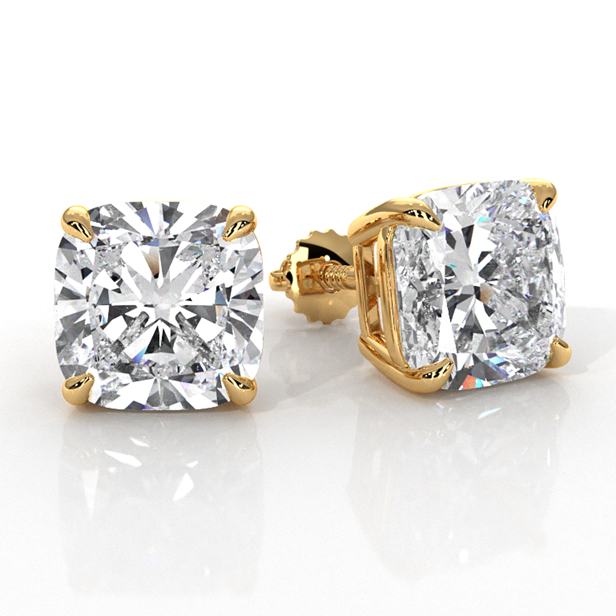 Cushion lab grown diamond claw prong basket style women's stud earrings are crafted in lustrous 14k Gold Yellow. These delightful earrings features a princess diamonds securely claw prong setting, with IGI certification. Also available in 14k & 18k white gold, yellow gold, rose gold and platinum 950. If you don't find your desired jewelry, please don't hesitate to contact our designer to make your custom jewelry design (8Ct. tw.)
