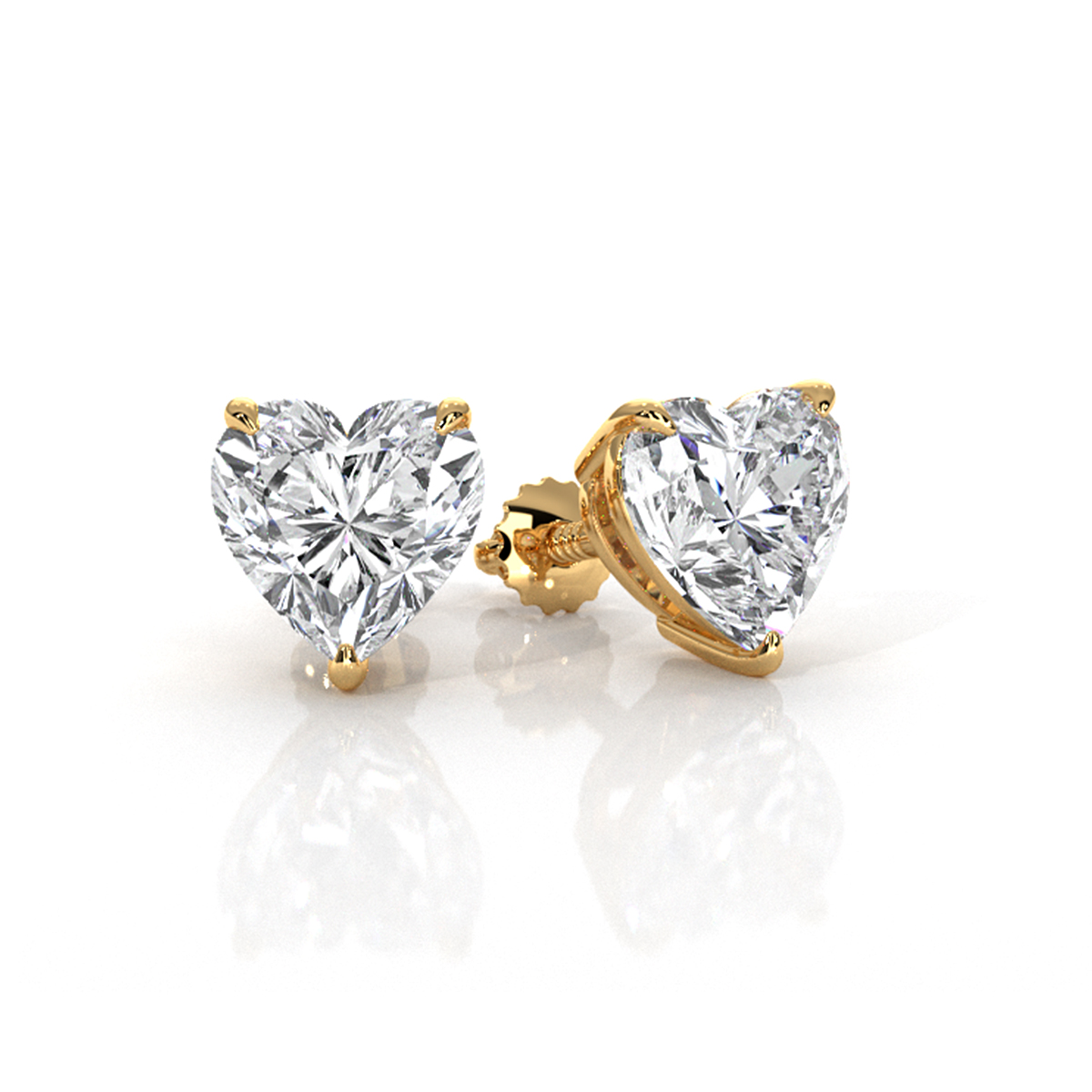 Exquisite set of claw prong basket circular heart lab grown diamond women's stud earrings meticulously crafted in lustrous 14k Gold Yellow, certified by IGI. Showcasing its dazzling carat heart diamond, delicately held in claw prongs. Ideal for commemorations, gatherings, or birthday celebrations, also available in 14k & 18k white gold, yellow gold, rose gold and platinum 950. If you don't find your desired jewelry, please don't hesitate to contact our designer to make your custom jewelry designs. (2Ct. tw.)