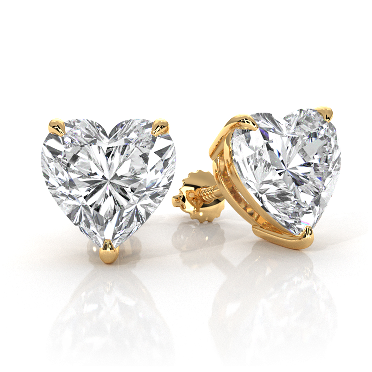 Dazzling selection of claw prong basket heart lab grown diamond women's stud earrings fashioned 14k Gold Yellow, certified by IGI. These diamond showcases carat heart diamond, delicately secured with claw prongs. These dainty diamond stud earrings are perfect for adding a touch of sparkle to any outfit, also available in 14k & 18k white gold, yellow gold, rose gold, and platinum 950. If your desired jewelry remains elusive, don't hesitate to contact our designer to personalize your unique jewelry designs. (6Ct. tw.)