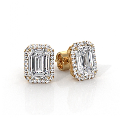 Halo Emerald Cut Claw Prong Lab grown Diamond Earring IGI 18k Gold (2.14Ct. tw.)
