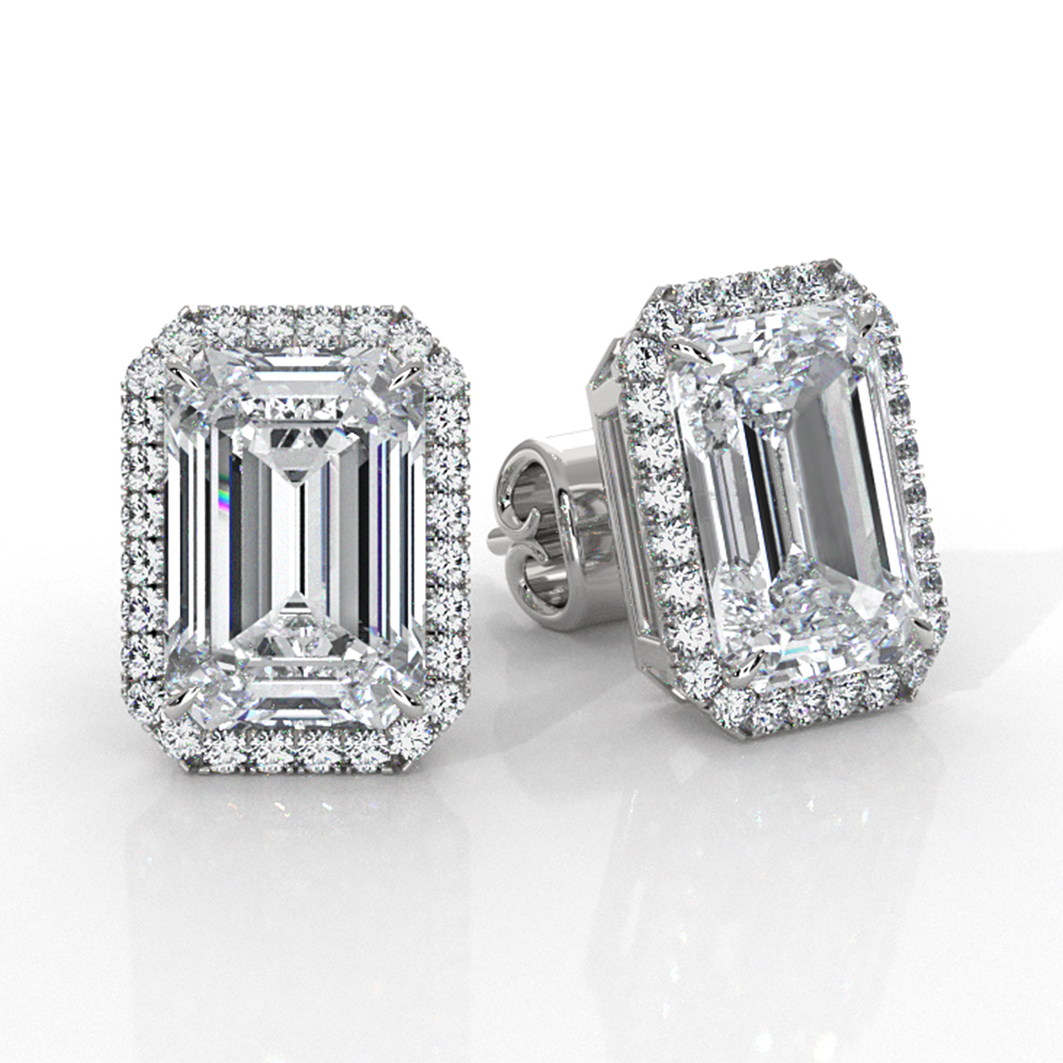 Emerald Cut Claw Prong Lab grown Diamond Halo Earring IGI 18k W Gold (5.36Ct. tw.)