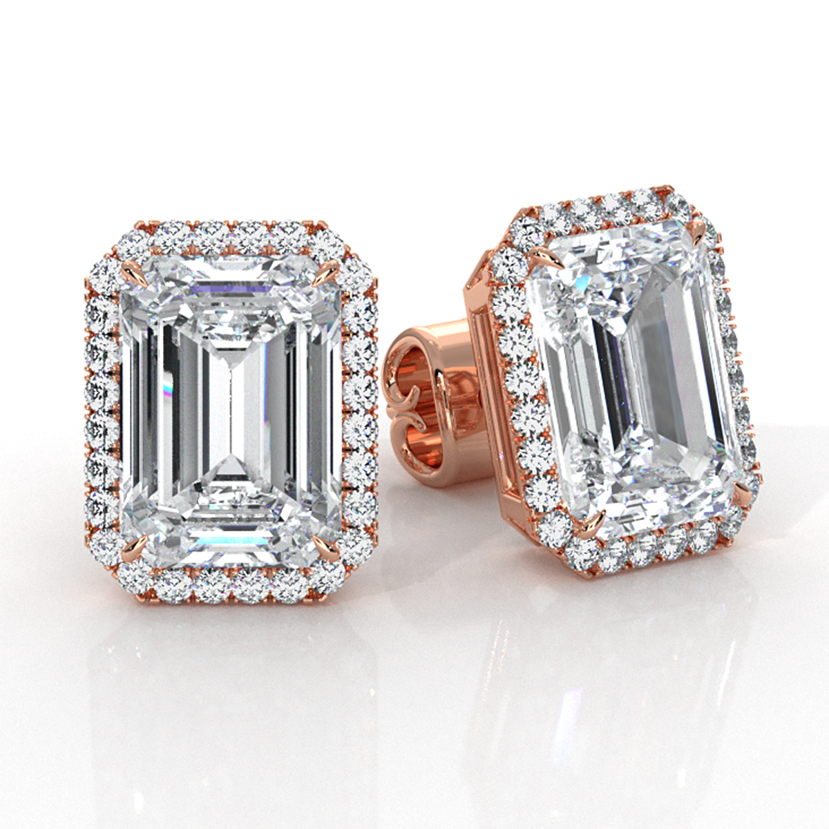 Halo Emerald Lab grown Diamond Claw Prong Stud Earring 18k Rose Gold (6.36Ct. tw.)