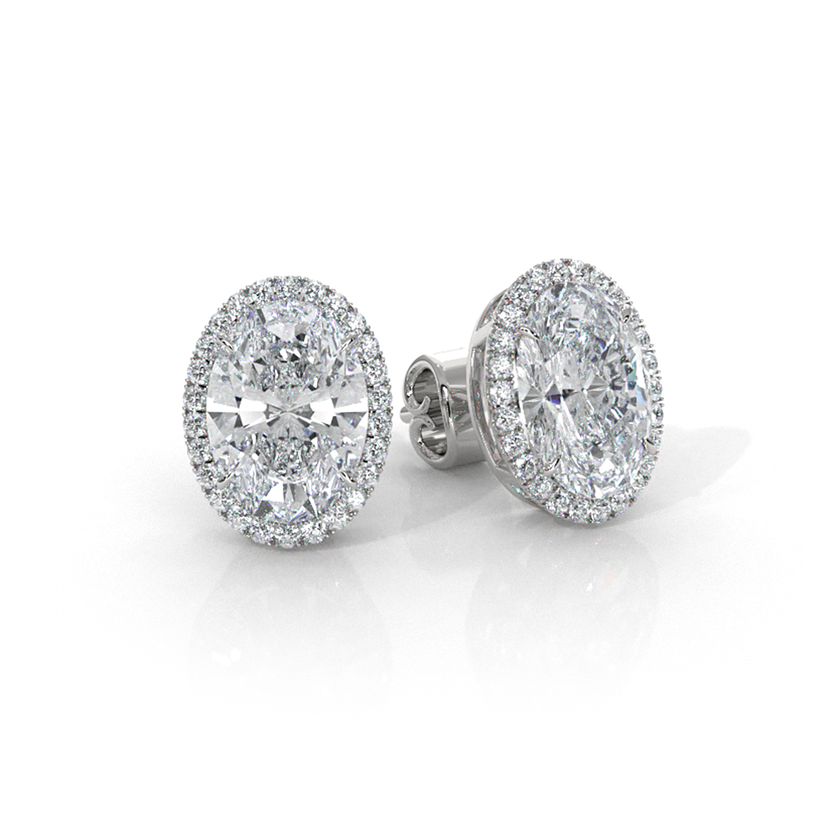 Halo Oval Cut Lab grown Diamond Claw Prong IGI Earring 18k W Gold (2.16Ct. tw.)