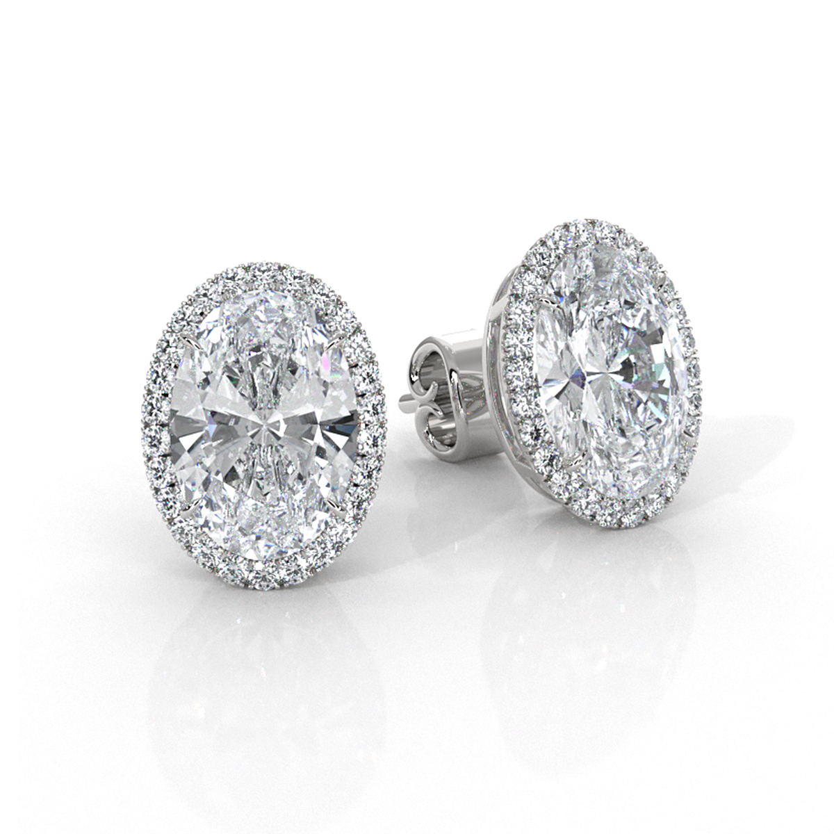 Halo Oval Cut Lab grown Diamond Claw Prong Earring IGI Platinum (3.26Ct. tw.)