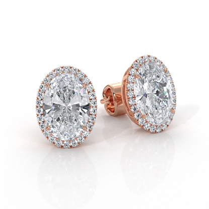 Classic pair of halo oval shape lab grown diamond basket style claw prong women's earrings meticulously crafted in 18k Rose Gold, certified by IGI. Showcases a carat dazzling oval cut diamonds secured with claw prong. These earrings are a perfect choice for any occasion. Also available in 14k & 18k white gold, yellow gold, rose gold and platinum 950. If you don't find your desired jewelry, please don't hesitate to contact our designer to make your custom jewelry designs (3.26Ct. tw.)