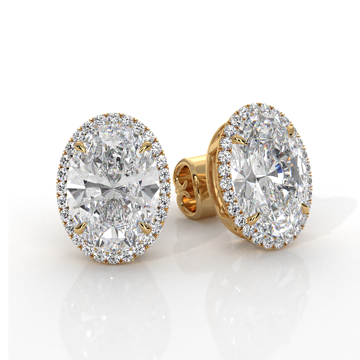 This beautiful and timeless pair of claw prong halo oval lab grown diamond women's earring made in 18k Gold Yellow. Showcases carat oval diamonds IGI Certified secured with claw prong. Add a touch of elegance to any outfit, also available in 14k & 18k white gold, yellow gold, rose gold and platinum 950. If you don't find your desired jewelry, please don't hesitate to contact our designer to make your custom jewelry designs. (5.55Ct. tw.)
