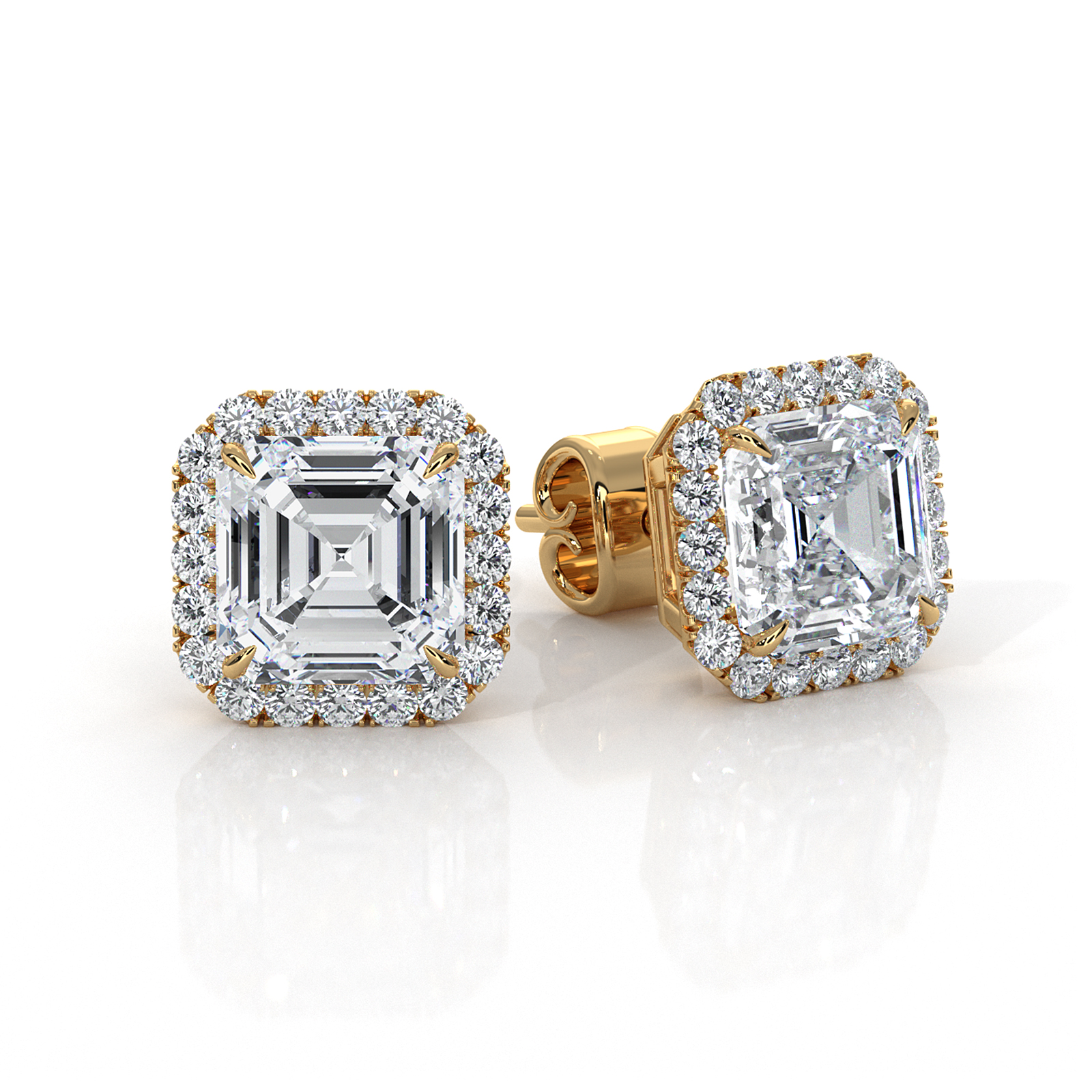 Honor the women you love with this beautiful claw prong halo asscher lab grown diamond earring made 14k Gold Yellow. This earrings showcases carat shimmering asscher diamonds adorned with a claw prong setting . Also available in your choice of the center diamond and gold metal in 14k & 18k white gold, yellow gold, rose gold, and platinum 950. If you don't find your desired jewelry, please don't hesitate to contact our designer to make your custom jewelry design. (3.31Ct. tw.)