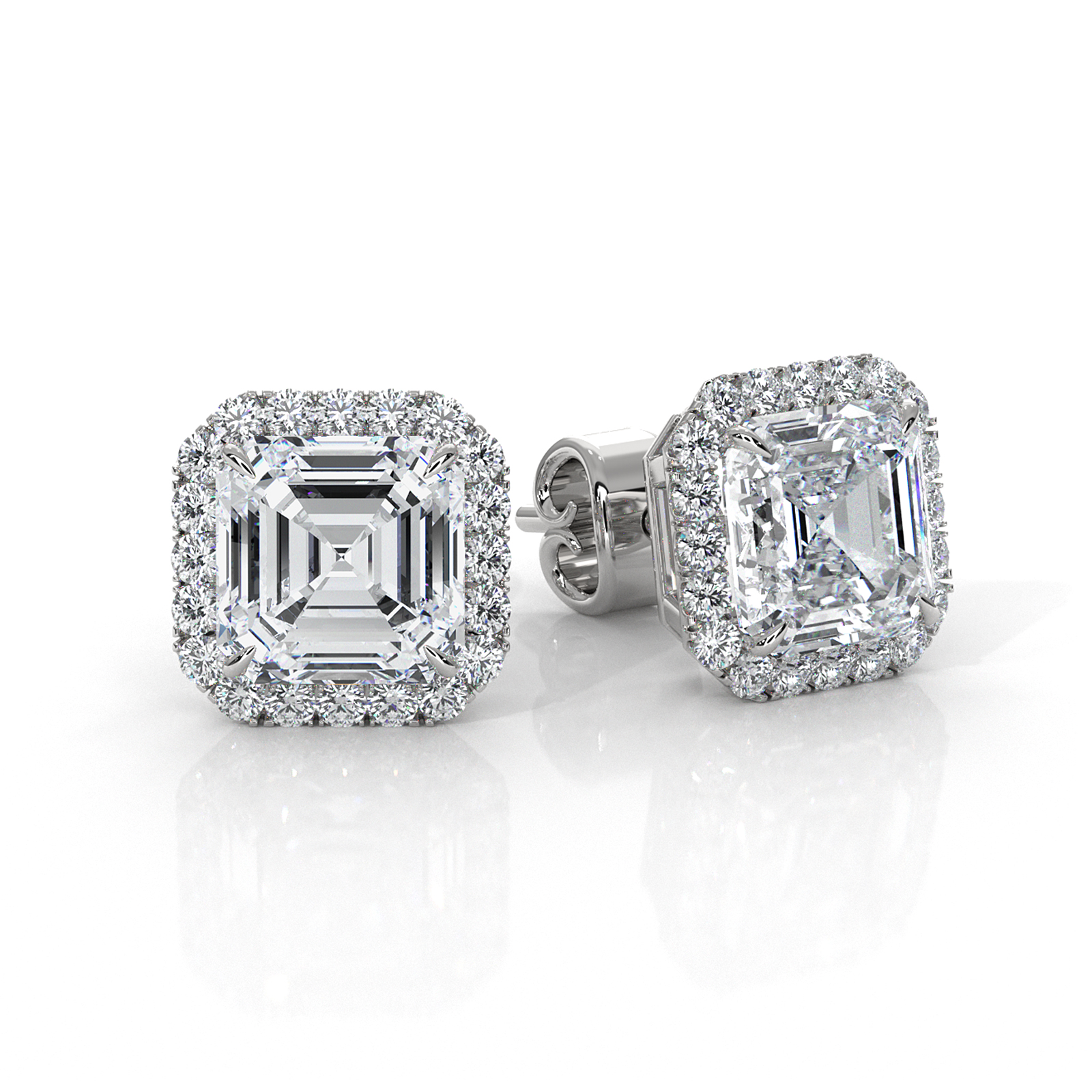 Honor the women you love with this beautiful claw prong halo asscher lab grown diamond earring made 18k Gold White. This earrings showcases carat shimmering asscher diamonds adorned with a claw prong setting . Also available in your choice of the center diamond and gold metal in 14k & 18k white gold, yellow gold, rose gold, and platinum 950. If you don't find your desired jewelry, please don't hesitate to contact our designer to make your custom jewelry design. (3.31Ct. tw.)
