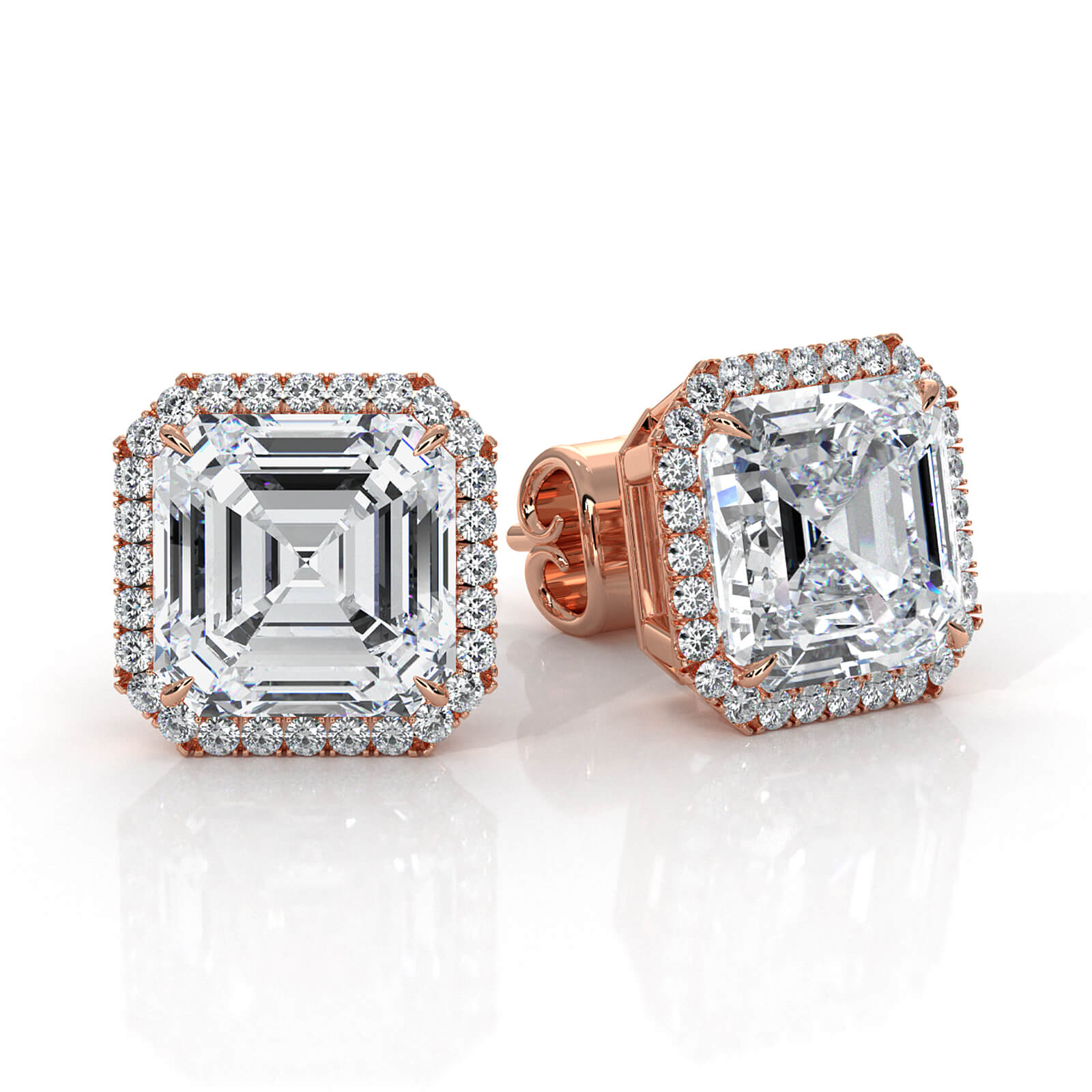 Claw Prong Asscher Lab grown Diamond IGI Halo Earring 18k Rose Gold (5.28Ct. tw.)