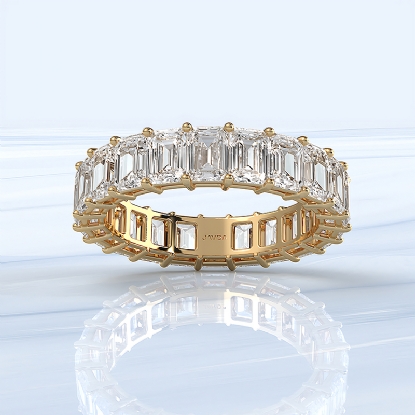 This stunning and timeless emerald cut lab-grown diamond women's eternity wedding band handmade in high quality 14k Gold Yellow. This elegant diamond anniversary ring showcases carat emerald diamond in a shared prong setting IGI Certified. Pair this wedding band with a engagement ring for a bit of sparkle. Also available in 14k & 18k white gold, yellow gold, rose gold and platinum 950. If you don't find your desired jewelry, please don't hesitate to contact our designer to make your custom jewelry design. (5.25Ct. tw.)
