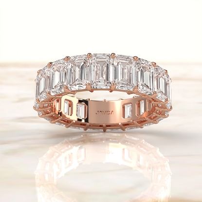 Celebrate everlasting love with this eternity ring featuring a brilliant carat of emerald cut lab-grown diamonds elegantly encircling a band. This shared prong women's wedding band crafted in 14k Rose Gold with IGI certified, also available in 14k & 18k white gold, yellow gold, rose gold and platinum 950. If you don't find your desired jewelry, please don't hesitate to contact our designer to make your custom jewelry design. (8.65Ct. tw.)