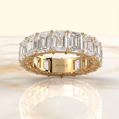This shimmering shared prong emerald cut lab-grown diamond women's eternity wedding band handcrafted in 14k Gold Yellow. Features . carats emerald diamonds in a shared prong setting IGI Certified. Mix and match this elegant wedding band with any diamond ring. Also available in 14k & 18k white gold, yellow gold, rose gold and platinum 950. If you don't find your desired jewelry, please don't hesitate to contact our designer to make your custom jewelry design. (6.7Ct. tw.)